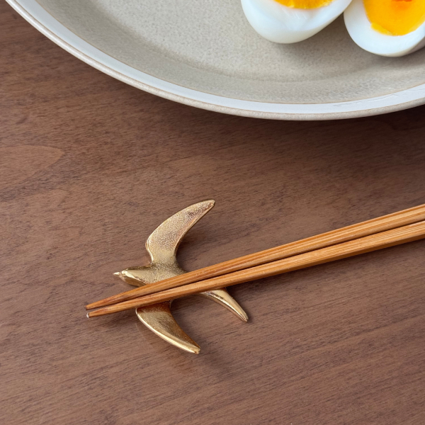 燕モチーフの箸置きが可愛すぎて、ひと目惚れでした。真鍮のほどよい重みがあって、手に取るとひんやりとした質感が心地よいです。ゴールドといっても落ち着いたトーンなので、テーブルの雰囲気を壊さず、むしろちょっとだけ華やかさをプラスしてくれる感じ。動きのある燕のフォルムも本当に可愛くて、使わないときはインテリアとして飾ってもいいなと思いました。秋冬の食卓にぴったりの、さりげないけどセンスのあるアイテムです。