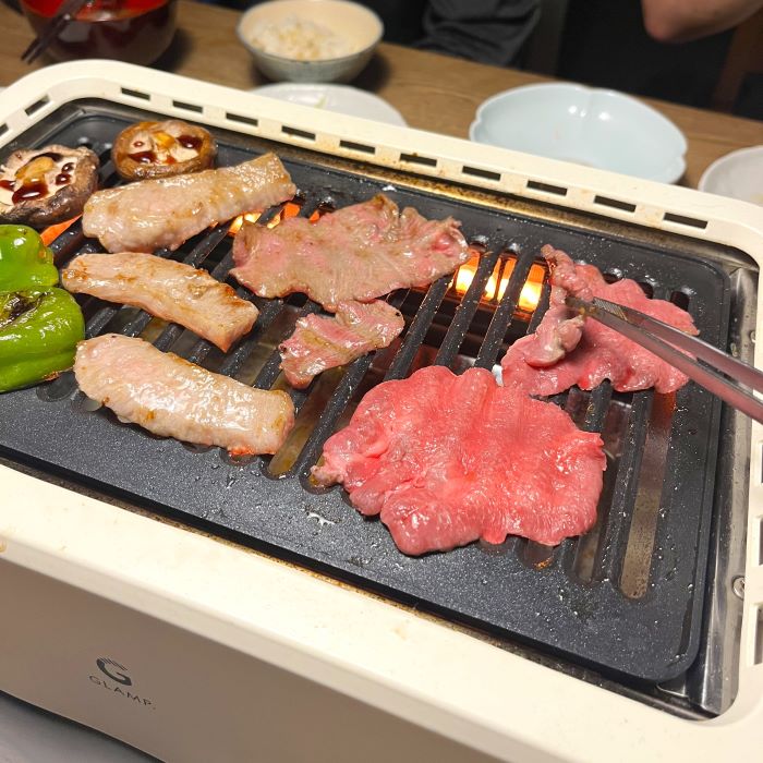 お家焼肉って「外で食べるほどおいしくないな」と思っていたのですが、これは違いました。外で食べるあの美味しさに、ぐっと近づきます。煙が少ないのに、美味しく焼ける!油はねが少なくて周りが汚れにくく、後片付けもとてもラク。「今日は焼肉にしよう」がぐっと気軽に。白は汚れが気になる?と思いきや、さっと拭くだけでOK。食卓も明るくなって、見た目も気に入っています。煙は控えめ、でも焼肉のいい香りはちゃんと残ります。においが嫌!って言う人は、お家焼肉はやめましょうね(笑)