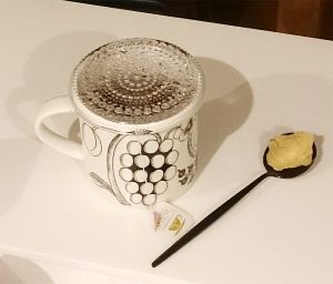 そして、会社では生姜パウダーを入れてます。私の感覚では、すりおろした生姜より、パウダーで飲んだほうがすぐにポカポカする気がします。