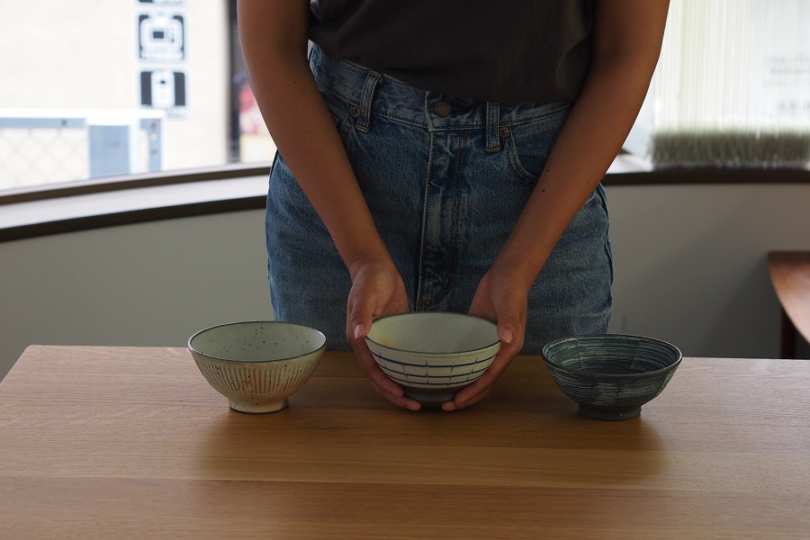 こちらはココチ舎さんの和食器たち。若い人たちや和食器初心者の方にも手に取りやすい器です。デニムのような青色が特徴的で、カジュアルにお使いいただけます!