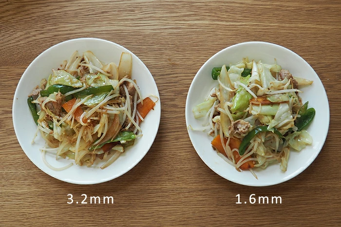 左が3.2mm、右が1.6mmで炒めたもの