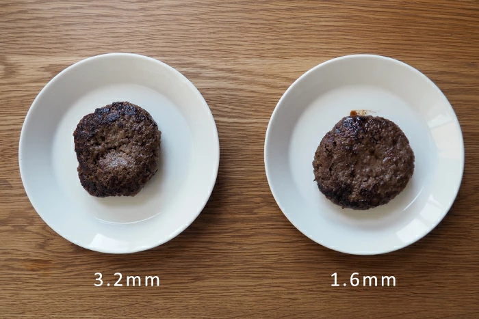 1.6mmのほうが肉汁が出てきていて、3.2mmは