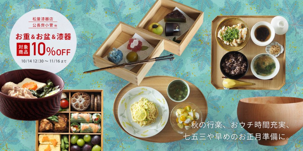 例年はお重を中心とした行楽を楽しんでいただくためのキャンペーンでしたが、今年はお盆や漆器も仲間入りしておうち時間も充実していただけるよう欲張りな内容となっています。七五三を迎えるご家族がいらっしゃるお客様はぜひご検討くださいね。●プロキッチン陶器市
