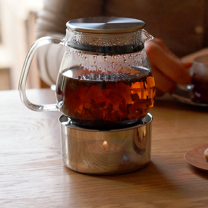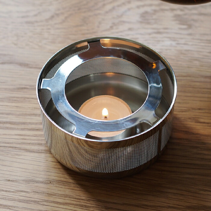 お手頃価格で、おしゃれで、キャンドルがほんのり透けて見える、なんともムーディーなやつ。サイズ的にもコンパクトだし、ステンレスのスタイリッシュなデザインは、どのようなポットとも相性良くお使いいただけますよ。中にティーキャンドルを入れて使います。