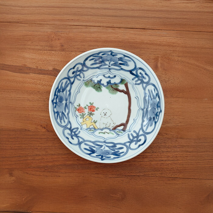 入荷するとすぐ完売してしまう人気の唐子シリーズから、新しい絵柄「隅入豆皿 色絵 じゃんけん唐子」と、堀畑さんの最近の代表作とも言える「6寸深皿 色絵 松と白犬」、