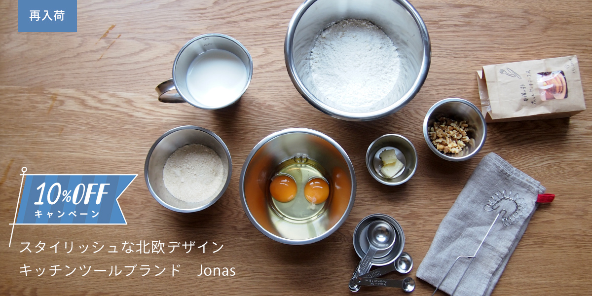 北欧のオシャレなステンレスキッチンツールブランドのJonas/ヨナスが再入荷しました。エア便で到着ホヤホヤのアイテムを期間限定でプライスオフ実施中です!