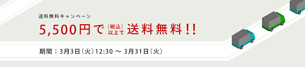 3月3日(火)12:30〜3月31日(火)まで税込5,500円以上のご購入で送料690円が無料に!※沖縄は送料1,790円のうち690円分無料