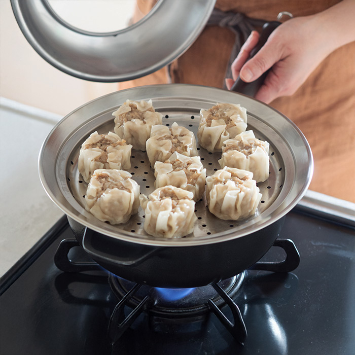 ステンレス製なので、脂の多い食材も気にせずOK。お手入れも神経質にならなくていいから、蒸し料理のハードルがぐっと下がります。