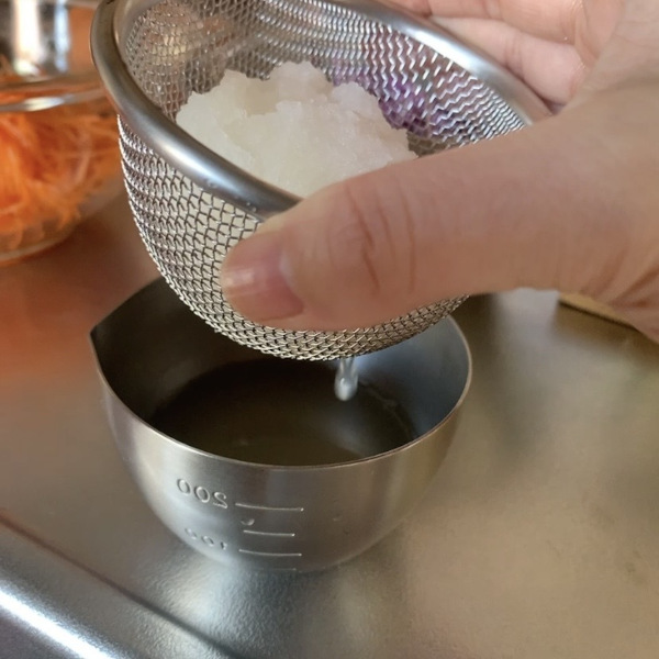 写真は、焼き魚に添える大根おろしを少しだけすりおろしたときの水切り。