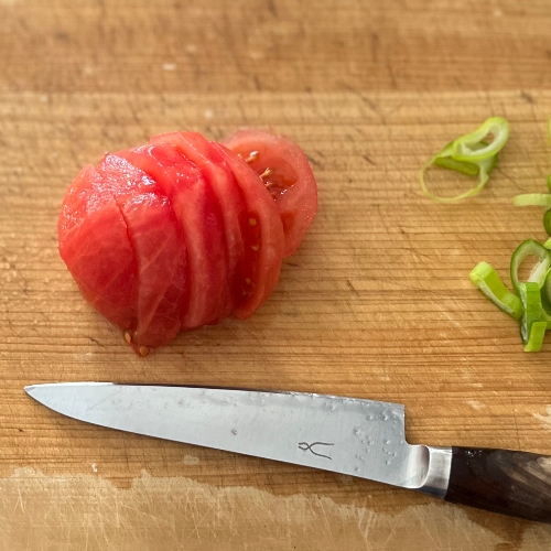 柔らかいトマトも力を入れずにスッと刃が入りました。メンテナンスのご褒美です。