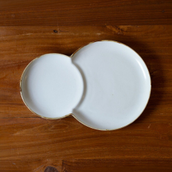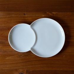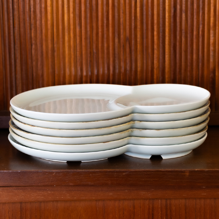 陶器市で出会った、雪だるまのような、ちょっと愛嬌のあるかたちのお皿。