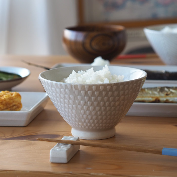 膨らみのないスーッとしたシルエットのシンプルなお茶碗です。男女問わずお使いいただけるサイズで、白米から炊き込みごはんまで美味しそうによそうことができます。小さめサイズもご用意しておりますので、家族でそれぞれ好みのサイズを選びお揃いでお使いください。