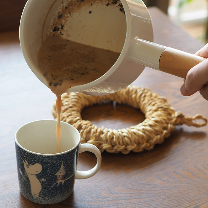 広い底面は安定感があり、調理中は熱をしっかりと受け止め効率よく伝えます。また、鍋の端部の巻き込み加工は、一般的なものよりもひと手間加えて加工を施したもので、ミルクやとろみのあるスープを注いだあとの水切れが格段に素晴らしく、使い手にストレスを感じさせない仕事っぷりに感動するはず。普段のお手入れは研磨剤入りのクレンザーなどは使用せず、食器用洗剤とスポンジや柔らかな棕櫚のたわしで。使っているうちに着色が気になりはじめたら重曹を使うときれいになりますよ。