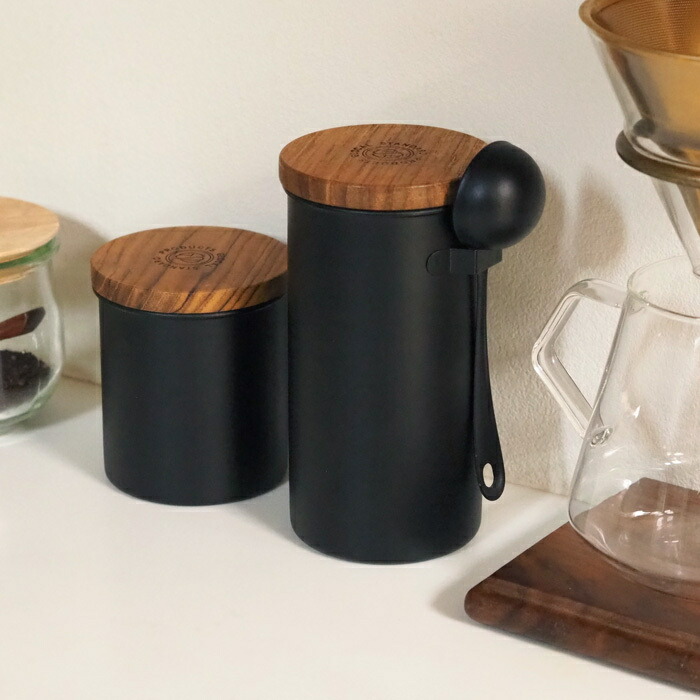 ロングサイズはコーヒー粉を約210g、コーヒー豆を約200g保存することができます。サイドにはメジャースプーンが収納できるフック付きで、別売りのコーヒーメジャースプーンをセットして使うことができます。スリムタイムのため、中のものを取り出すときには柄の長いスプーンがマストアイテムですよ。他にも他にもティーバッグを保存したり、茶葉や紅茶、チョコレートやドライフルーツ、ナッツなどのお菓子などにも。シックなデザインはいくつか並べて飾りたくなる絵になる存在感。ドリッパーと一緒にコーヒー好きの方へのプレゼントにもどうぞ。コーヒー好きの方へのプレゼントにもどうぞ。