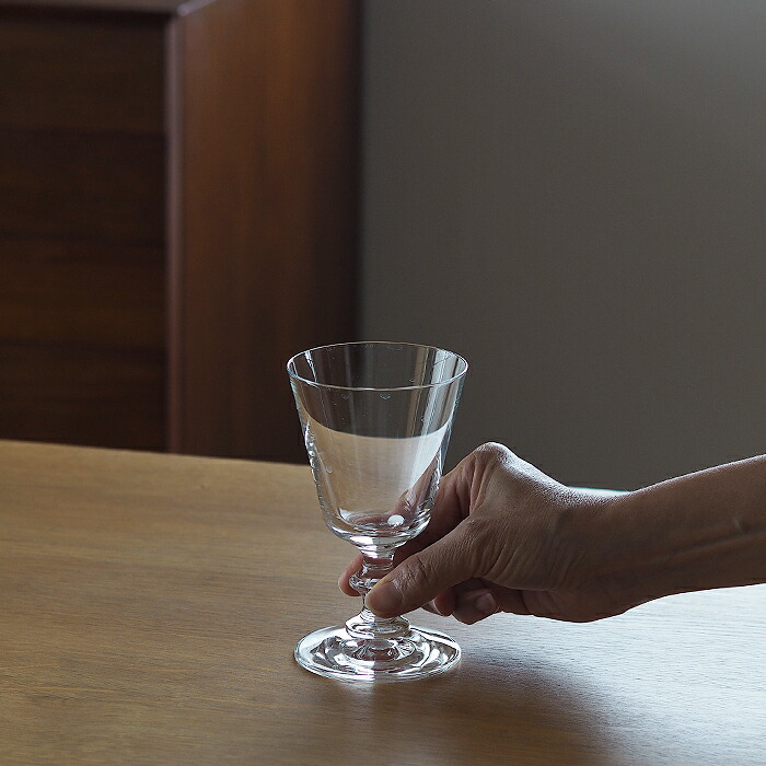 スロバキアで作られているマシンメイドのワイングラス、フランスシリーズ。目を惹くのはステムにあしらわれたアンティークを思わせるディテールの美しい装飾。この装飾はフォーマルなシーンに寄り添うエレガントさを放っているのと同時に、指を添えたときの持ちやすさにもつながっています。太めのステムは短めで重心が低いため安定感があり、ガラスは口元にかけて薄さを持たせつつも全体的にやや厚めの仕上がり。見た目の繊細さとは裏腹にカジュアル使いを楽しむことができます。