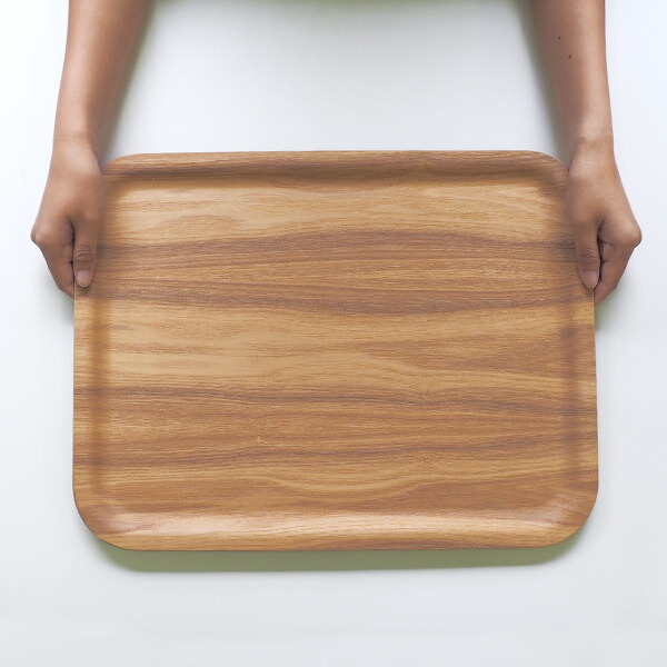 Lサイズはメイン料理を盛り付けたプレート2枚分くらいを一度に運ぶことができます。また、人が大勢集まった時のグラス類や取り皿、アルコール用の氷などを運ぶ時にも便利ですよ。ノンスリップトレイは軽くて丈夫なプライウッド製。縁の立ち上がりに丸みを持たせ指のかかりがよいデザインになっています。重ねて収納できるからキッチンの隙間にすっきりとしまえます。サイズは全部で3種類ございます。