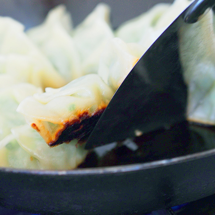 この「薄さ」と「しなり」で調理した物とフライパンの間に気持ちよく入っていき、きれいに剥がせます。餃子、目玉焼き、ハンバーグ、魚のムニエル、お好み焼きなど焼き目をつける料理のターナーとしてお勧めです。ただこの「しなり」の影響で大きめの物を裏返す作業は不得意。その際は菜箸を添えるとうまくいきますよ。