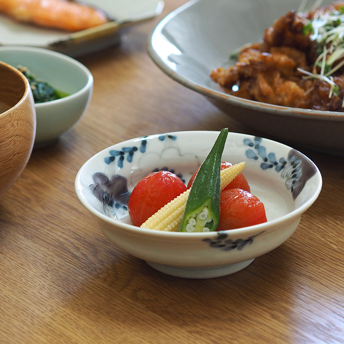 直径16cm前後の手のひらサイズの小皿は小さいながらもその用途は広く醤油皿、漬物皿、おつまみ皿、小さな焼き菓子を載せたりと色々なシーンに彩りを添える食器です。また、丸型だけでなく四角や変形など遊び心のある形状のものもあり、素材も磁器、陶器、ガラスなど個性豊か。季節や行事に合わせた絵付けのものをチョイスすると小さいながらも存在感を放ちテーブルに特別な雰囲気が生まれます。おもてなしのシーンなどにも重宝するサイズですので、お気に入りのものを揃えておくと良いでしょう。素材によっては電子レンジや食洗機、オーブン機能に対応していないものもあるので、各商品ページを確認のうえご注文ください。