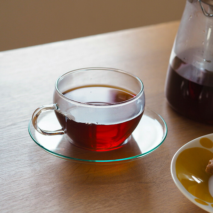 ハーブティーを飲むときはガラスのカップ&ソーサーでお茶の色も楽しむようにしています。ボヘミアクリスタルの器は耐熱ガラスでありながら薄さと軽さがとっても心地いいアイテム。寒い季節にはカップのみをスープ用としても活用しています。食洗機&電子レンジに対応しているので、気軽に使える点もおすすめポイントです。