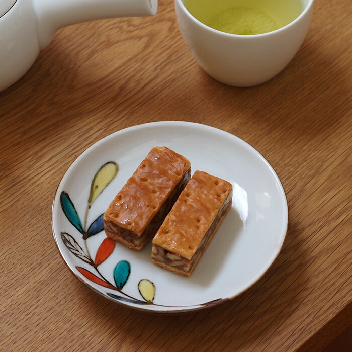 ある日の朝ごはん。ベーコンエッグとミニトマト・・・というとっても簡単なごはんを「色絵遊び葉 6寸皿」に。6寸皿は約18cm、なだらかな深さがあるので煮物や汁気のあるおかずにもちょうどいいお皿です。縁に描かれた色とりどりの葉が地味なごはんでもぱっと華やかにしてくれる気がするので、お気に入りの一枚になりそうです!