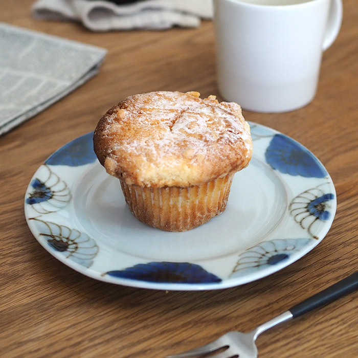 少しゆがんだ楕円のお皿にひとつひとつ手描きでかかれたブルーベリーがかわいいです。ケーキ皿には少し大きいかな?というサイズ感ですが、余白があることでフルーツと合わせたりクリームを載せたりも。パラティッシとも合いますね。