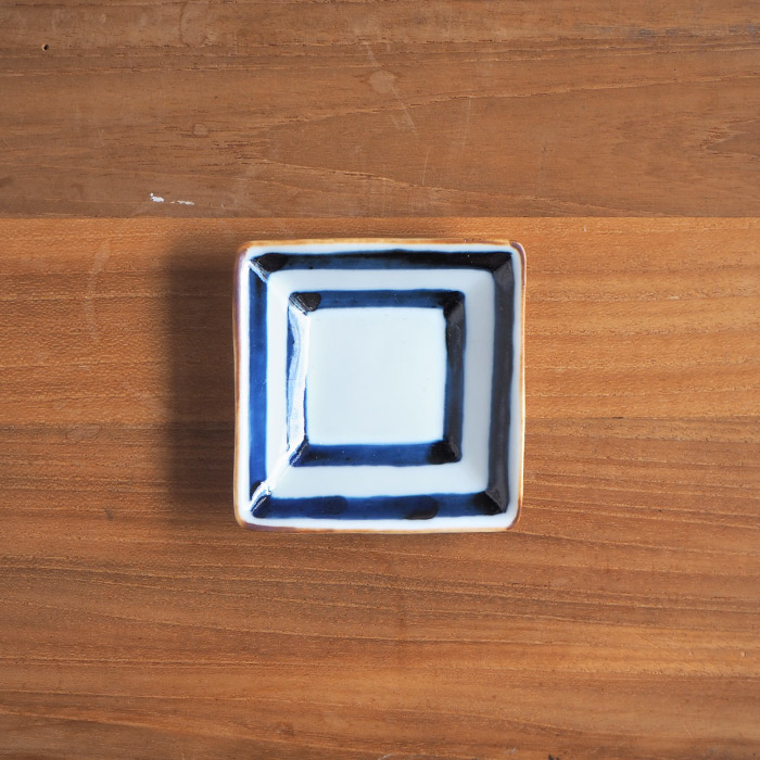 日下華子 色絵 タテヨコ呉須 もっこ豆皿