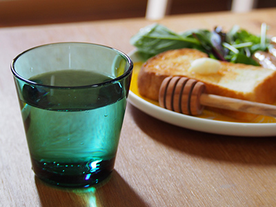 家のカルティオはクリア・フォレストグリーン・レイン、となんとなく緑・青系統でまとめています。そこに仲間入りしたエメラルド。色合いがかぶっちゃうかな?と思ったのですが、優しい青緑がまた違った雰囲気で、さすがイッタラ!と感心するばかりです。