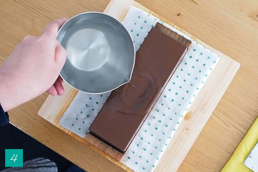 - 研ぎやすいように高さを出し、作業中に砥石が滑らないように固定させる台と濡れふきん